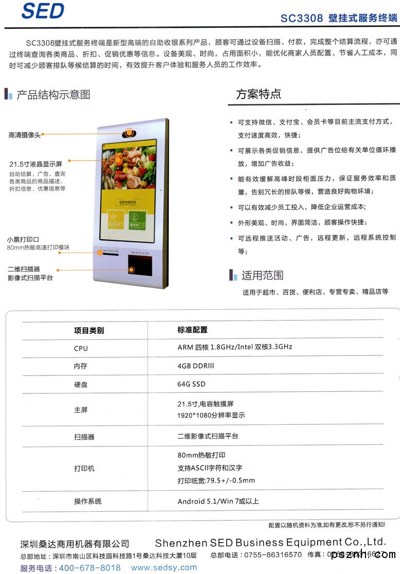 深圳桑達(dá)商用機(jī)器有限公司在桑達(dá)股份公司雄厚的技術(shù)和資金的支持下取得快速發(fā)展,現(xiàn)有員工近400人,其中40%以上是具有碩士、本科學(xué)歷或高級職稱的高素質(zhì)人才,建立起先進(jìn)的管理、研發(fā)、生產(chǎn)和質(zhì)量保證體系,自主研發(fā)生產(chǎn)的POS收款機(jī)、稅控收款機(jī)、網(wǎng)絡(luò)自助終端機(jī)、移動(dòng)收銀等系列產(chǎn)品,擁有強(qiáng)大的服務(wù)團(tuán)隊(duì),為客戶提供專業(yè)的IT運(yùn)維服務(wù)。在深圳高新技術(shù)園,公司擁有近萬平方米的專業(yè)生產(chǎn)廠房,具備完善的產(chǎn)品檢測能力,所有產(chǎn)品所執(zhí)行的企業(yè)標(biāo)準(zhǔn)完全符合或超過國家標(biāo)準(zhǔn)。現(xiàn)已形成年產(chǎn)10萬臺/套POS產(chǎn)品及100萬臺稅控產(chǎn)品的生產(chǎn)能力。特別是立足于桑達(dá)公司二十余年的收款機(jī)經(jīng)營、開發(fā)和生產(chǎn)經(jīng)驗(yàn),成為國內(nèi)收款機(jī)行業(yè)的奠基者之一。公司自一九九六年起在市場上不斷推出美觀實(shí)用、經(jīng)濟(jì)和超強(qiáng)穩(wěn)定的SED系列POS收款機(jī),產(chǎn)品受到信息產(chǎn)業(yè)部、內(nèi)貿(mào)部等有關(guān)國家部委的多次肯定和廣大用戶的熱烈歡迎。公司將“真誠相伴、共創(chuàng)未來”的信念融入二十余年的POS機(jī)生產(chǎn)、銷售和服務(wù)的歷程。全體員工堅(jiān)持以ISO9001質(zhì)量保證體系和ISO14001環(huán)境體系為基本要求,嚴(yán)格管理,以客戶的需求為導(dǎo)向,與客戶達(dá)成雙贏為目標(biāo),不斷為客戶提供更優(yōu)質(zhì)的產(chǎn)品和更體貼的服務(wù)。經(jīng)過二十多年的辛勤耕耘,桑達(dá)產(chǎn)品遍布全國各地,東至舟山群島、北到大慶、南及海南島、西登青藏高原、新疆石河子,所有設(shè)備歷經(jīng)各種環(huán)境考驗(yàn),盡顯卓越品質(zhì)。