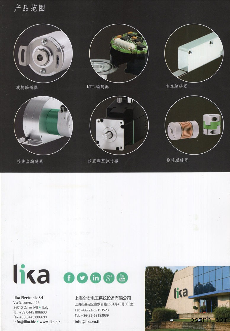 上海全宏電工系統(tǒng)設(shè)備有限公司 stands for encoders and position measuring systems. Since its inception in 1982, Lika Electronic develops and manufactures incremental and absolute, optical and magnetic, rotary and linear encoders, incremental & absolute sensors, linear and rotary incremental & absolute magnetic measurement systems, rotary actuators, displays, signal converters and encoder interfaces.