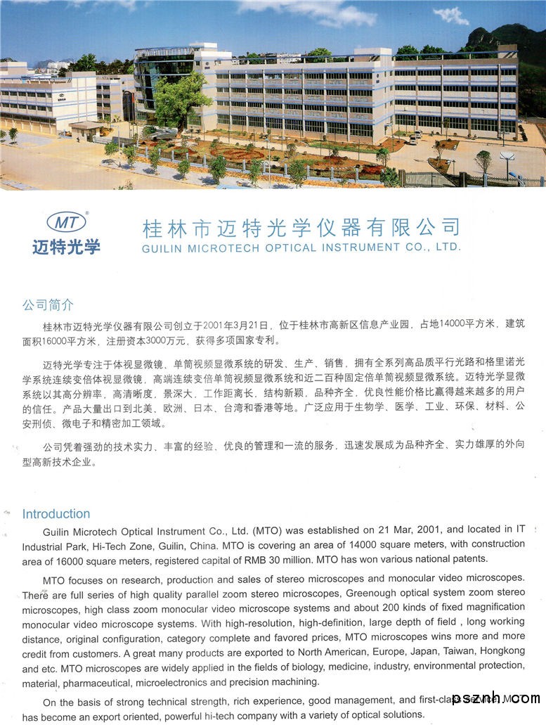 桂林市邁特光學儀器有限公司成立于2001年,公司位于桂林市國家高新區(qū)信息產(chǎn)業(yè)園內(nèi),廠房建筑面積16000多平方米,為自有廠房。