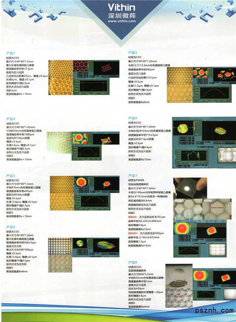公司專注于聚合物微透鏡陣列的研發(fā)與生產(chǎn),材料通常選用PMMA和COC,微透鏡陣列可用于光信息處理、光計(jì)算、光互連、光數(shù)據(jù)傳輸,也可用于復(fù)印機(jī)/掃描儀/傳真機(jī)、光場照相機(jī),以及醫(yī)療衛(wèi)生器械中,并可廣泛用于通信、顯示和成像器件當(dāng)中。在消費(fèi)電子領(lǐng)域,常見的應(yīng)用有VR/AR、3D成像與顯示、微型投影儀、LED照明、迎賓光毯/天使之翼、夜視儀