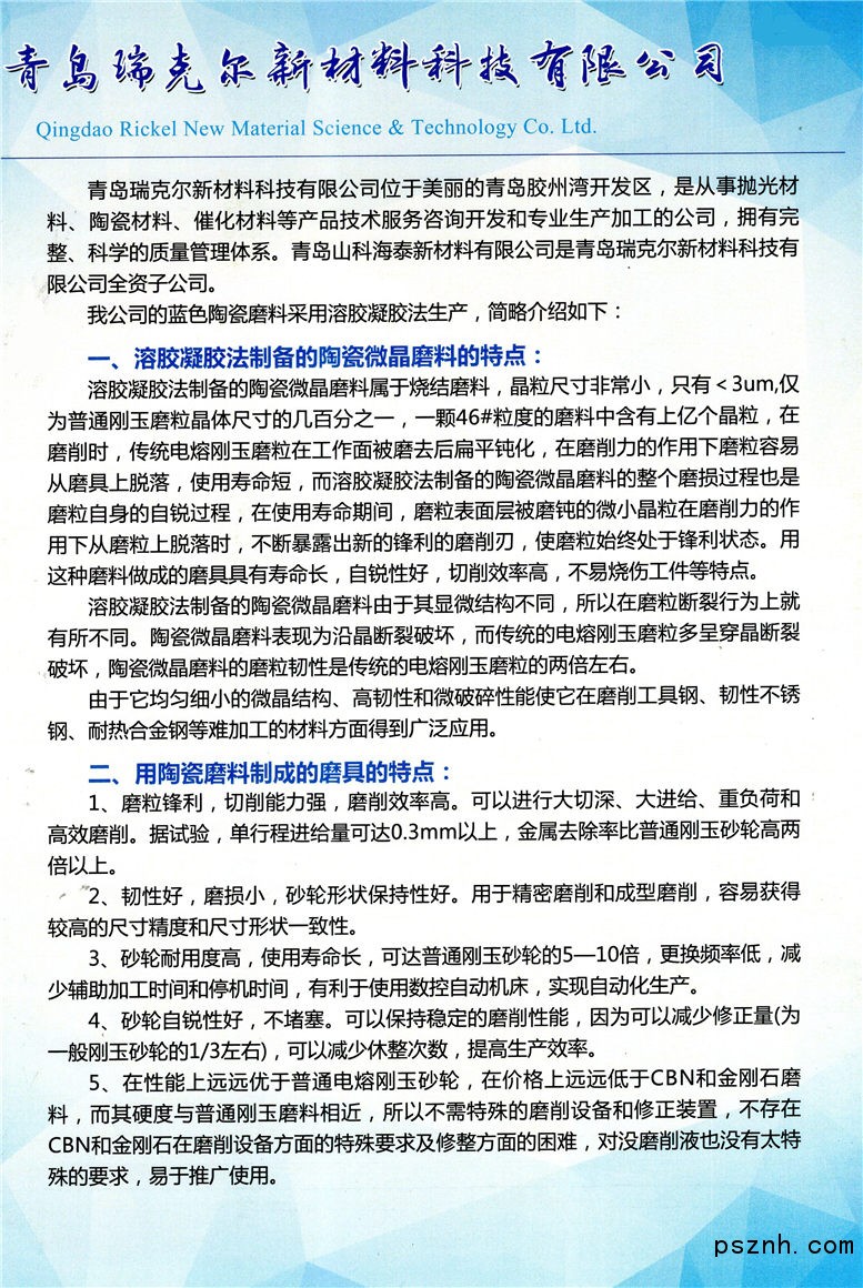 青島瑞克爾新材料科技有限公司位于美麗的青島經(jīng)濟(jì)技術(shù)開(kāi)發(fā)區(qū),是從事BCA陶瓷磨料,擬薄水鋁石、專(zhuān)用氧化鋁、溶膠、催化劑等產(chǎn)品技術(shù)服務(wù)咨詢(xún)開(kāi)發(fā)和專(zhuān)業(yè)生產(chǎn)加工的公司,擁有完整、科學(xué)的質(zhì)量管理體系。青島山科海泰新材料有限公司是青島瑞克爾新材料科技有限公司全資子公司。 公司依托山東科技大學(xué)材料學(xué)院和化工學(xué)院強(qiáng)大的科研團(tuán)隊(duì),主要從事無(wú)機(jī)非金屬材料、粉體技術(shù)、催化材料、載體成型、精細(xì)化學(xué)品和有機(jī)廢物處理等方面的研究應(yīng)用和技術(shù)推廣。