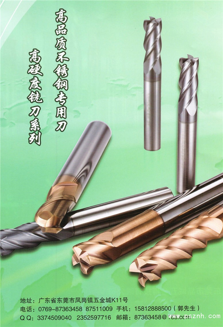 東莞市名銳切削工具有限公司是一家專業(yè)生產(chǎn)鎢鋼(硬質(zhì)合金)刀具的廠家,擁有德國五軸精密CNC工具磨床及臺灣工具生產(chǎn)設(shè)備10余臺,光學(xué)檢驗設(shè)備數(shù)臺,并選用國內(nèi)外優(yōu)質(zhì)鎢鋼素材,品質(zhì)穩(wěn)定,經(jīng)驗豐富,秉持著[不斷進取,精益求精]的理念經(jīng)營,專業(yè)的為您解決各種刀具問題。主要產(chǎn)品有:微晶粒鎢鋼涂層銑刀、高速鋁專用銑刀、超微粒鎢鋼鉆頭、鎢鋼圓棒、鉸刀、鋸片銑刀、焊刃式鋸片銑刀、燕尾刀、槽銑刀、螺旋銑刀、T型銑刀、燕尾槽銑刀、面銑刀盤。同時根據(jù)客戶不同加工要求訂做各類非標(biāo)刀具,如臺階鉆、臺階銑刀、復(fù)合鉸刀、鉆鉸刀、鉆銑刀、扁鉆、半月鉆、雕刻刀、錐度鉆頭、高爾夫球刀鉸刀、粗皮銑刀、焊接T型刀、焊接臺階銑刀、焊接螺旋銑刀;交貨期快,質(zhì)量保證。歡迎廣大朋友提供圖紙或樣品前來訂做; 同時代理多種進口品牌刀具,刀片,如:三菱、日立、瓦爾特、京瓷、KORLOY等。