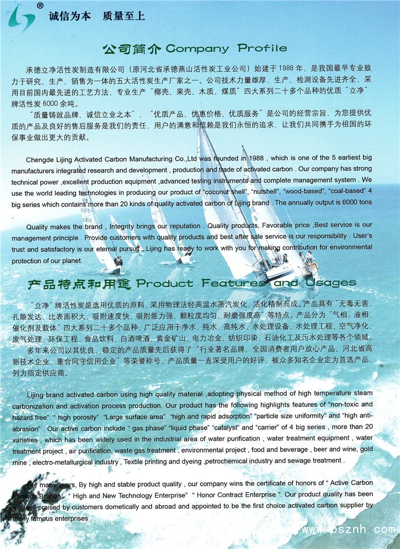 承德立凈活性炭制造有限公司 椰殼凈水炭 果殼凈水炭 椰殼黃金炭 果殼黃金炭 空氣凈化炭 粉狀活性炭 煤質(zhì)狀柱炭 煤質(zhì)破碎炭 電子高純水專用活性炭 蜂窩活性炭 脫色用活性炭 樹(shù)脂 石油化工專用炭 酒點(diǎn)擊:767 評(píng)論:0 查看原圖 |