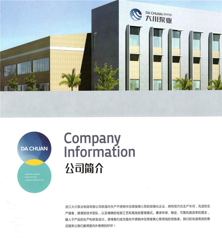 浙江大川泵業(yè)制造有限公司是一家專業(yè)致力于水泵產(chǎn)品研發(fā)﹑生產(chǎn)﹑銷售為一體的科技創(chuàng)新型企業(yè)。成立之初憑借自動化領(lǐng)域的專業(yè)水平和成熟技術(shù),在泵類領(lǐng)域迅速崛起。依靠科技發(fā)展并充分引進(jìn)吸收國外先進(jìn)技術(shù)的基礎(chǔ)上,不斷為用戶提供滿意的高質(zhì)量產(chǎn)品。