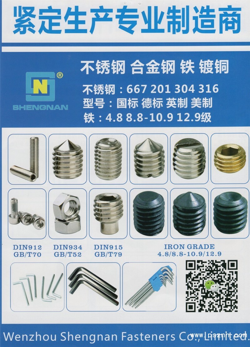 溫州盛南標(biāo)準(zhǔn)件有限公司 內(nèi)六角平端緊定螺釘 開槽平端緊定螺釘 鍍銅緊定 開槽錐端緊定螺釘 螺釘類 螺母類 螺栓類 墊圈類點(diǎn)擊:695 評論:0 查看原圖 |