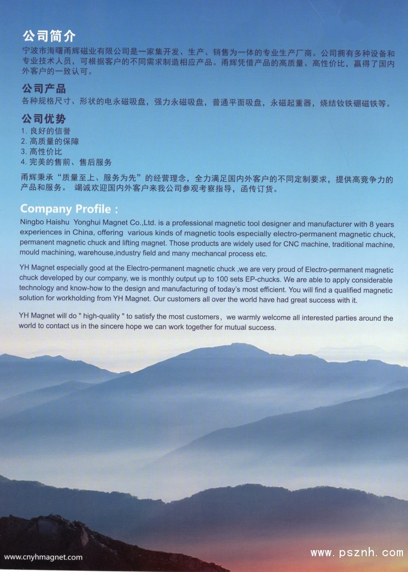 寧波市海曙甬輝磁業(yè)有限公司 電永磁吸盤 矩形永磁吸盤 圓形永磁吸盤 正弦永磁吸盤 永磁起重器 釹鐵硼磁鐵