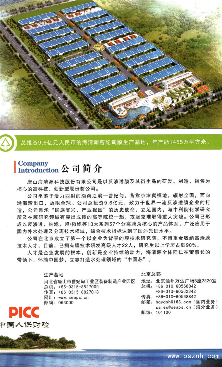 唐山海清源科技股份有限公司(以下簡稱公司)成立于2012年3月,注冊資本10137萬元,占地213.7畝,建筑面積8.4萬㎡,總投資4.7億元。