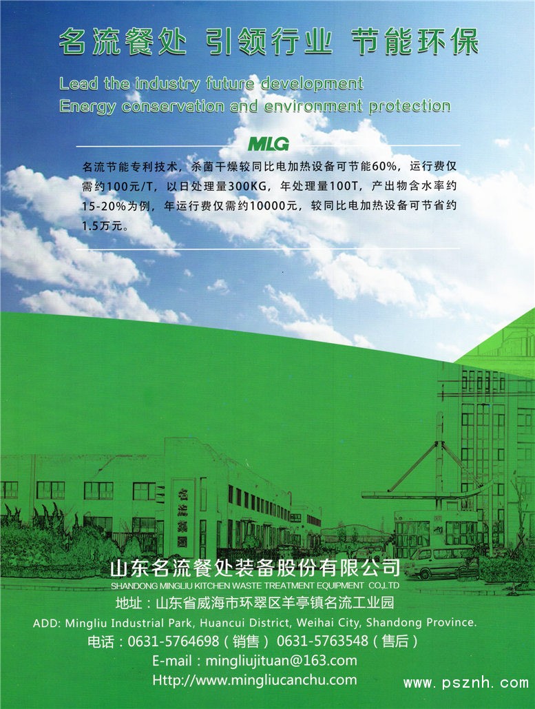 山東名流餐處裝備股份有限公司(原名山東華綠餐處科技股份有限公司)為名流集團下屬子公司,專業(yè)從事餐廚棄物處理設(shè)備的研發(fā)、試制、生產(chǎn)、銷售和運營。公司注冊資本5000萬元,職工人數(shù)193人,擁有由韓國原科學(xué)會會長、原子力研究所、GAIA研究所所長韓弼淳博士帶隊的高素質(zhì)研發(fā)團隊20余人。建有環(huán)保設(shè)備研發(fā)中心、菌粉研發(fā)中心、微生物實驗室。