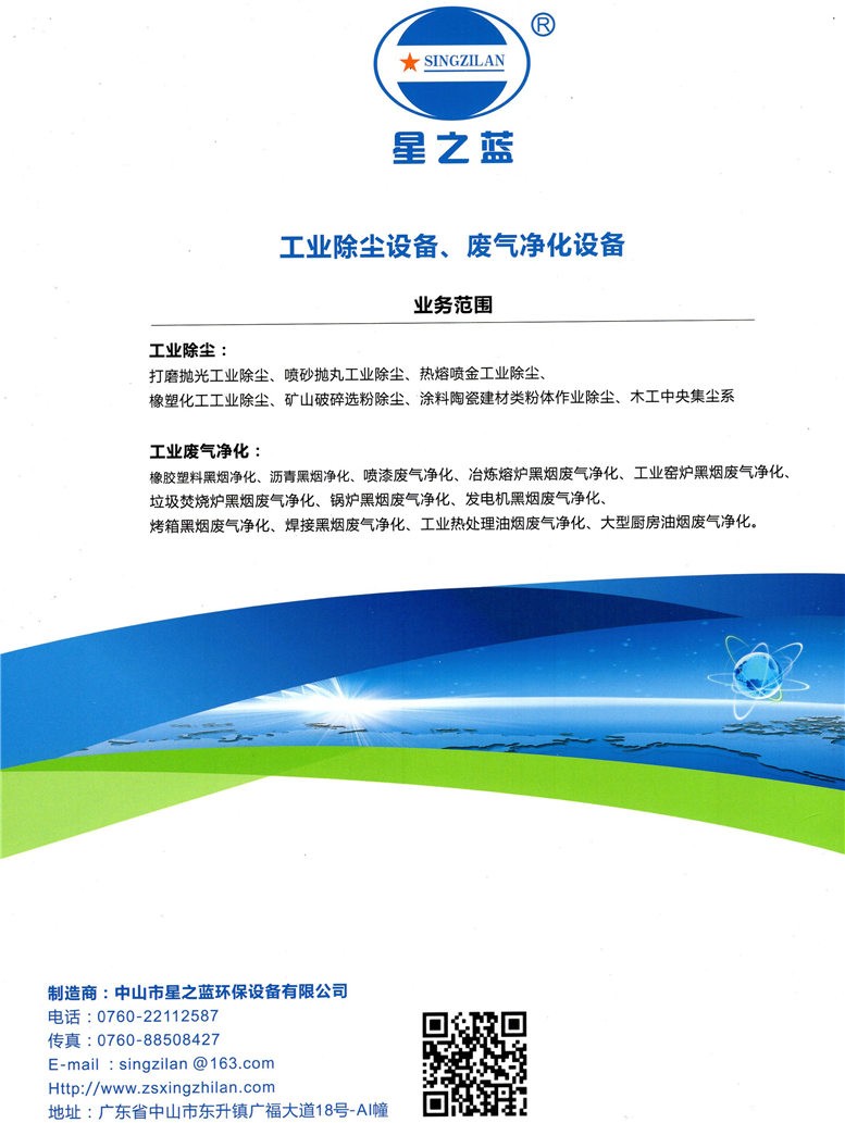中山市星之藍(lán)環(huán)保設(shè)備有限公司 工業(yè)脈沖除塵設(shè)備、焊煙凈化設(shè)備、漆霧廢氣凈化設(shè)備點(diǎn)擊:693 評(píng)論:0 查看原圖 |