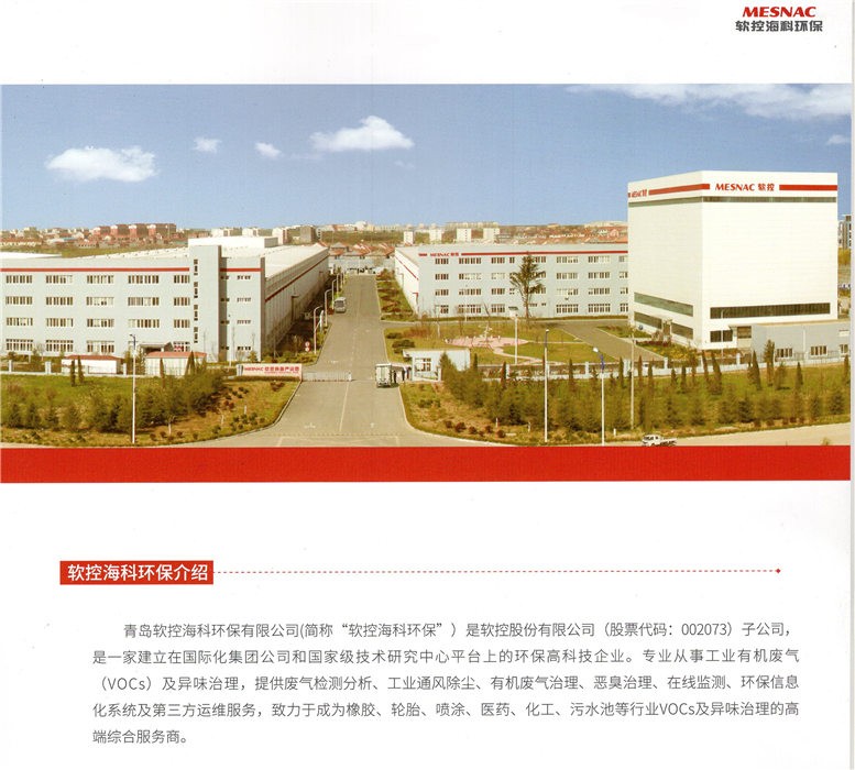 青島軟控海科環(huán)保有限公司(簡稱“??骗h(huán)保”)是軟控股份有限公司(股票代碼:002073)子公司,是一家建立在國際化集團公司和國家級技術(shù)研究中心平臺上的環(huán)保高科技企業(yè)。專業(yè)從事工業(yè)有機廢氣(VOCs)治理,提供廢氣檢測分析、工業(yè)通風(fēng)除塵、有機廢氣治理、惡臭治理、在線監(jiān)測、環(huán)保信息化系統(tǒng)及第三方運維服務(wù),致力于成為橡膠、輪胎、噴涂、化工、醫(yī)藥等行業(yè)VOCs治理的高端綜合解決方案供應(yīng)商。
