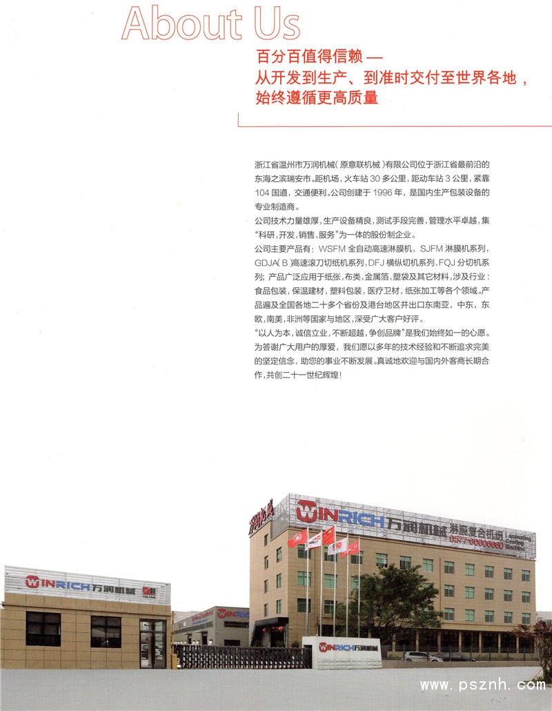 公司主要產(chǎn)品有:WSFM全自動(dòng)無(wú)軸高速淋膜機(jī),SJFM淋膜機(jī)系列,DFJ橫縱切機(jī)系列,QFJ分切機(jī)系列;GDJB滾刀機(jī)等。產(chǎn)品廣泛應(yīng)用于紙張,布類,金屬箔,塑袋及其它材料。產(chǎn)品遍及全國(guó)各地二十多個(gè)省份及港臺(tái)地區(qū)并出口東南亞,中東,東歐,南美,非洲等國(guó)家與地區(qū),深受廣大客戶好評(píng)。