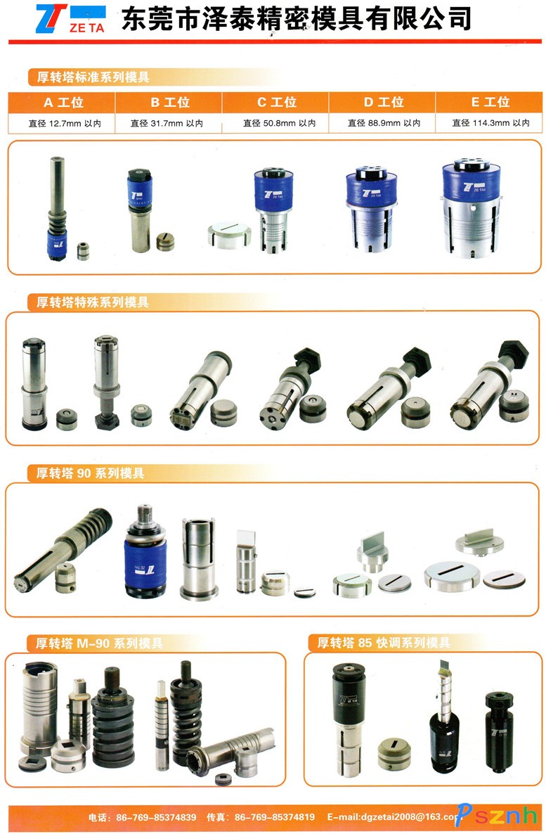 澤泰生產(chǎn)的數(shù)控沖床模具廣泛應用于Amada、Tailift、Finnpower、Trump、Wiedemann、LFK、大同、揚力、捷邁、金方圓等國內(nèi)外各種類型數(shù)控沖床。公司自創(chuàng)立以來,在完善公司運作同時,不斷引進國內(nèi)外先進技術,使公司的生產(chǎn)規(guī)模及業(yè)務范圍得以迅猛發(fā)展,國內(nèi)外多家著名企業(yè)指定本公司為其模具供應商。澤泰擁有從事五金模具設計十多年經(jīng)驗的工程師及經(jīng)驗豐富的五金模具師傅,以獨到的技術從模具的設計、開發(fā)到制作,均可全面達到客戶的要求,能夠根據(jù)客戶來圖來樣快速開模、產(chǎn)品沖壓等。