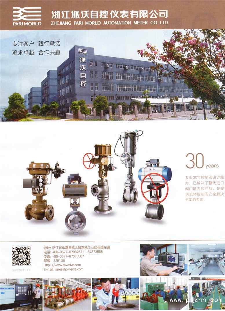 浙江派沃自控儀表有限公司(原永嘉縣東方自動(dòng)化儀表廠)是控制領(lǐng)域研發(fā)及生產(chǎn)的領(lǐng)先企業(yè)之一。公司始建于1985,注冊(cè)資金5020,二十余年致力于產(chǎn)品的開發(fā)與創(chuàng)新。公司的產(chǎn)品質(zhì)量穩(wěn)定可靠并以其獨(dú)特的性能在廣大用戶中享有較高的信譽(yù),不斷引進(jìn)消化國(guó)外先進(jìn),自行研制了特種調(diào)節(jié)閥,應(yīng)用于自動(dòng)化成套技術(shù)方面達(dá)到國(guó)際先進(jìn)水平,使產(chǎn)品在控制系統(tǒng)領(lǐng)域里,再登新臺(tái)階。