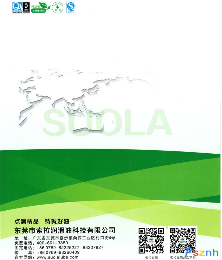 東莞索拉潤(rùn)滑滑科技有限公司是一家擁有18年生產(chǎn)經(jīng)驗(yàn)的專業(yè)制造商   座落在廣東制造名城東莞市寮步向西工業(yè)園區(qū) 是一家集研發(fā),生產(chǎn),銷售為一體的高新技術(shù)企業(yè) 18 年專注于金屬加工油的研發(fā)和生產(chǎn),主要產(chǎn)品有有環(huán)保切削液 玻璃切削液 切削油 深孔鉆切削油 防銹油 成型油 拉伸油 液壓油 導(dǎo)熱油等,產(chǎn)品適用于汽車制造、機(jī)械、冶金、采礦、鋼鐵、電梯、等領(lǐng)域,以優(yōu)越的品質(zhì)、專業(yè)的技術(shù)、完善的服務(wù),贏得了國(guó)內(nèi)外眾多品牌企業(yè):三星、