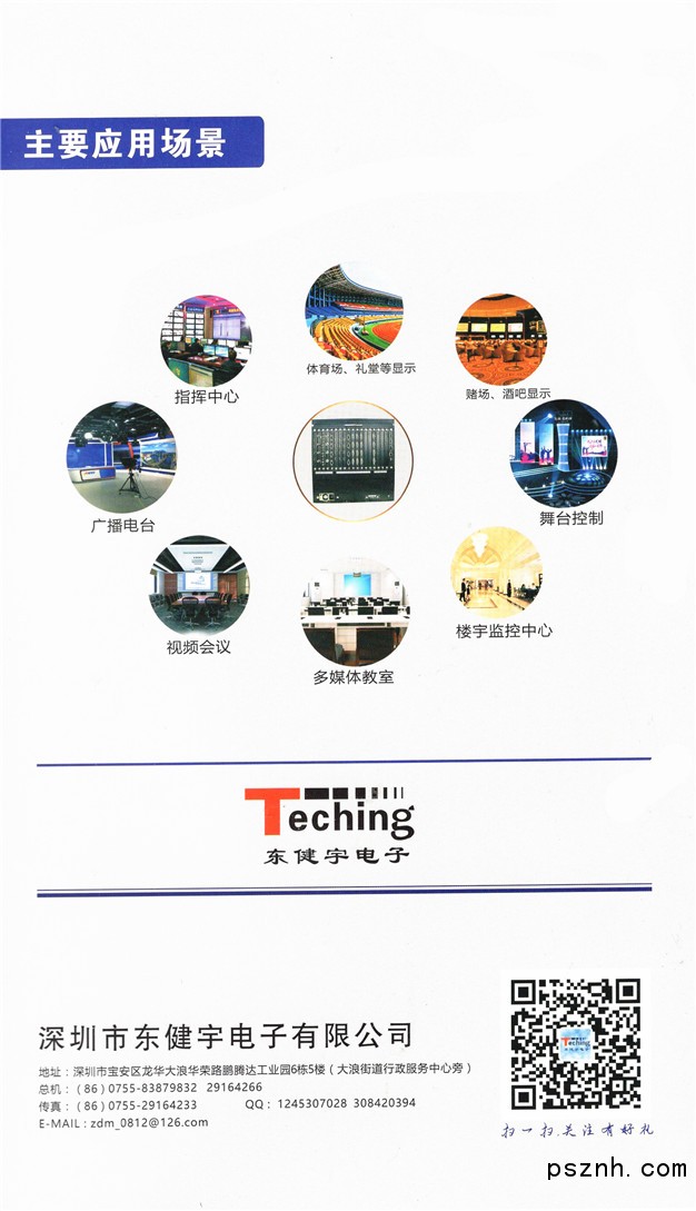 深圳市東健宇電子有限公司其前身為深圳市達強科技有限公司。 2006 年元月改名為深圳市東健宇電子有限公司。深圳市東健宇電子有限公司是一家專業(yè)從事閉路電視監(jiān)控產(chǎn)品研發(fā)-生產(chǎn)-銷售的高科技安防企業(yè)。本公司主要生產(chǎn)Teching(東健宇)品牌系列( 矩陣主機、鍵盤、安防集成管理軟件 );Teching(東健宇)品牌系列VGA/RGB高清矩陣;Teching(東健宇)品牌系列HDMI、DVI、HD-SDI等高清數(shù)字矩陣;美國DVT 數(shù)字光纖傳輸系統(tǒng);