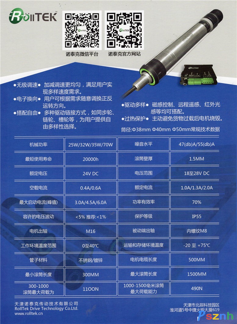天津諾泰克傳動技術(shù)有限公司 皮帶式輸送設(shè)備專用微型電動滾筒 Rolltek電動滾筒