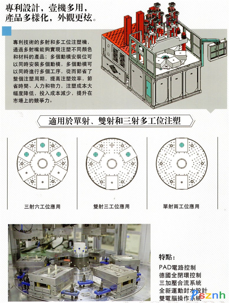 (4). 主要設備及特點:CNC電腦鑼車10臺(OKUMA、MAKINO、YASDA、ROKU-RUKU)線切割機10臺(MAKINO、AGIE、SODIC、ARD)注塑機113臺(日精樹脂、東芝、JSW)。十萬級無塵(噴油)工作室、2臺CMM三元次測量儀(英國STAUBLI)。全部模具3D設計、全部EDM電極采用統(tǒng)一的條形碼管理,在業(yè)內(nèi)極少數(shù)廠家能做到這種管理。特別是ETCHING蝕紋;雕刻;研磨全在公司內(nèi)加工,業(yè)內(nèi)較少見。CMK及SPG等統(tǒng)計方法管理膠件公差,制模交期特快,每月制模40-80套。