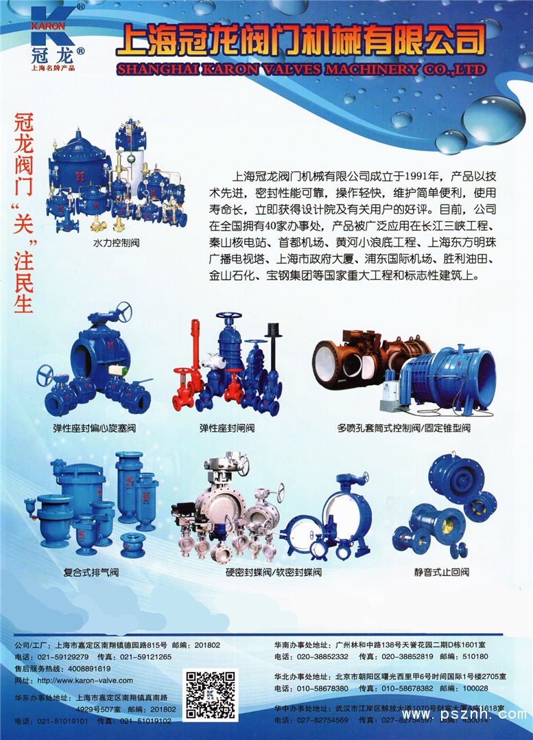合作,擁有較強的技術(shù)開發(fā)能力,產(chǎn)品質(zhì)量及性能受到用戶的好評。冠龍公司生產(chǎn)的可調(diào)式減壓閥、緩閉式止回閥、泄壓\持壓閥,各類排氣閥、止回閥、蝶閥等多種產(chǎn)品,被東方明珠廣播電視塔、南京國際機場、上海市人民政府大廈等許多國內(nèi)重點工程選用。許多產(chǎn)品由于其優(yōu)異的功能,被評為建設(shè)部推薦產(chǎn)品。并獲得城鎮(zhèn)給水協(xié)會的好評。