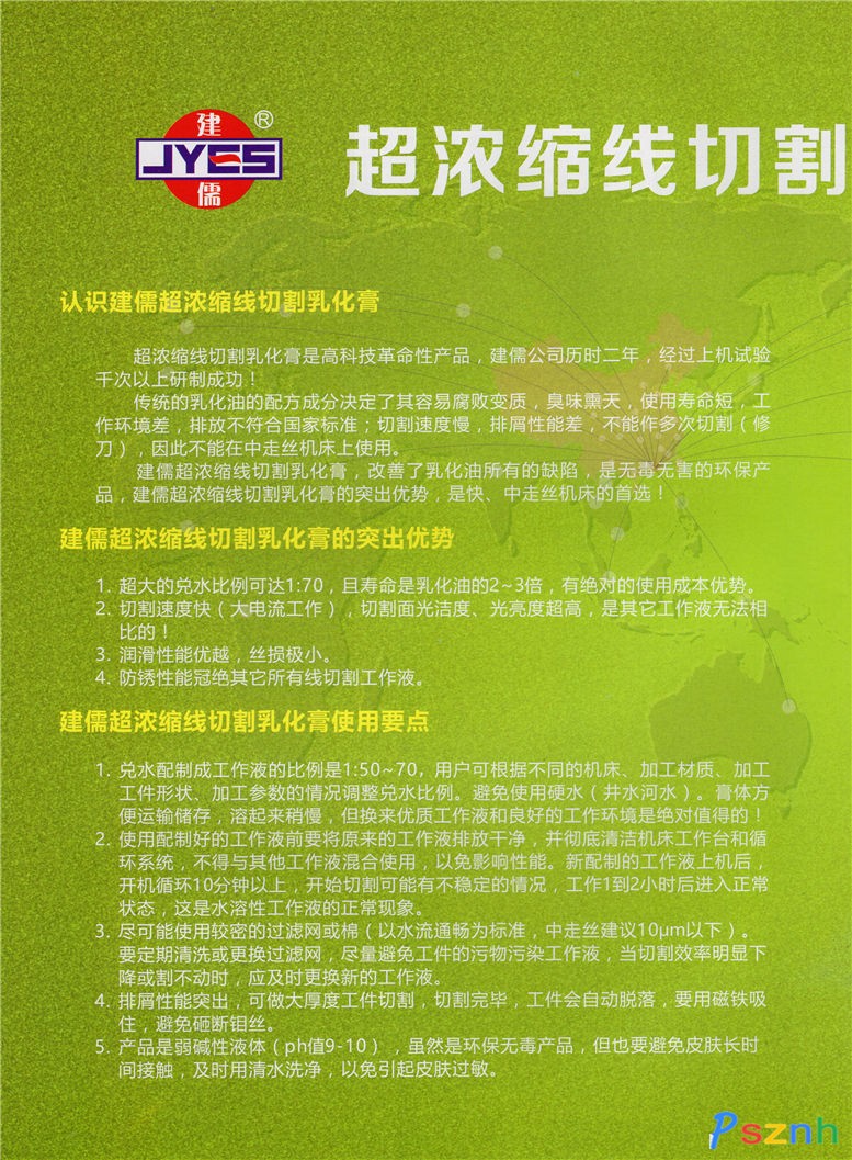 深圳市建筑科技有限公司是專業(yè)從事金屬加工助劑研發(fā) 生產(chǎn) 銷售的高科技企業(yè),近年來,積極尋求與國內(nèi)外科研機構(gòu)及行業(yè)領(lǐng)先企業(yè)的合作。堅持"不達到國際先進水平的產(chǎn)品不投放市場"的原則,開發(fā)生產(chǎn)出了系列高水平和品質(zhì)穩(wěn)定的金屬加工助劑,現(xiàn)已投放市場的建儒系列產(chǎn)品有:模具專用防銹劑 模具專用清洗劑 脫模劑頂針油,中快走絲線切割乳化膏,電火花加工液 超級切削液的金屬磨削液。其中,模具專用防銹劑自2003年投放市場以來,未發(fā)生過一起在有效期內(nèi)生銹的事件,被業(yè)內(nèi)公認(rèn)為最好的國產(chǎn)防銹劑之一。超級切削液和精磨液工作效率高,使用壽命超過一年,綜合性能完全達到或超過國際著名品牌,已被多家金屬加工企業(yè)被選為替代進口著名品牌。中快走絲線切割油膏用于中快走絲線切割性能卓越,并滿足多次切割的要求(“修刀”)