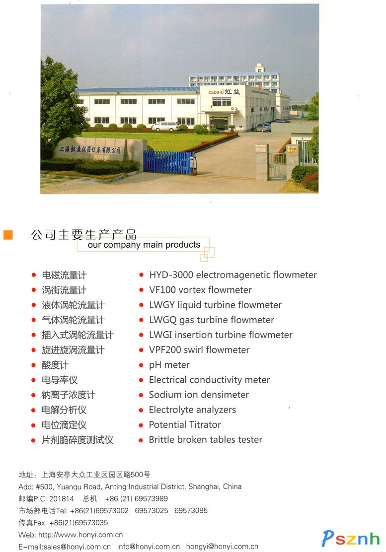上海虹益儀器儀表有限公司位于上海安亭工業(yè)園區(qū),公司占地18000多平方米,廠房面積6300平方米。公司原名為上海虹益儀器廠,創(chuàng)建于1974年,原來以生產(chǎn)實驗室分析儀器為主,1999年以后開始生產(chǎn)流量儀表,已有近十年歷史。