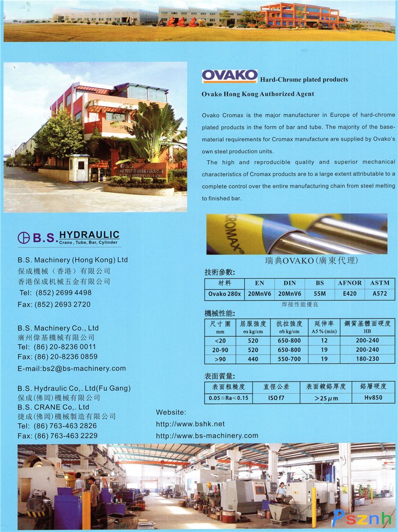 保成機(jī)械(香港)有限公司于1984年成立, 成立初期以工程機(jī)械維修, 吊機(jī)銷售及保養(yǎng)為主要業(yè)務(wù)? 九十年代中期, 保成受惠于中國的門戶開放政策, 得以在中國內(nèi)地開始拓展業(yè)務(wù)? 廣州偉基機(jī)械有限公司在1996年成立, 專業(yè)從事珩磨鋼管, 活塞桿, 油缸組成及油壓機(jī)械零配件製造? 公司本著誠信, 卓越, 創(chuàng)新的經(jīng)營理念, 漸獲客戶及業(yè)界先進(jìn)同仁們的認(rèn)可與支持, 得以發(fā)展? 公司于2004年在廣東清遠(yuǎn)投資成立保成(佛岡)機(jī)械有限公司, 佔(zhàn)地75,000平方米, 致力于冷拔材料, 油缸組成, 專業(yè)設(shè)備, 吊重省力化機(jī)械(吊機(jī))的生產(chǎn)製造?