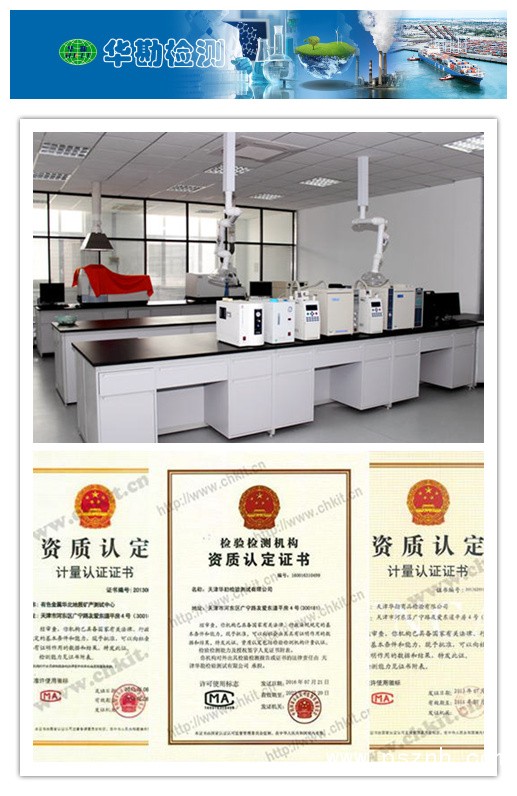 天津華勘檢驗測試有限公司是中國國家認證認可監(jiān)督管理委員會認定的第三方檢測機構,擁有中國檢驗測試機構強制認定資質(CMA)、中國合格評定認可委員會(CNAS)認可的實驗室、質量管理體系認證資質證書、地質勘查甲級資質證書(巖礦鑒定、巖礦測試和巖土試驗)、國家高新技術企業(yè)資質證書以及進出口商品檢驗鑒定機構資格證書等,我公司具備一套完整的第三方檢驗測試資質體系。