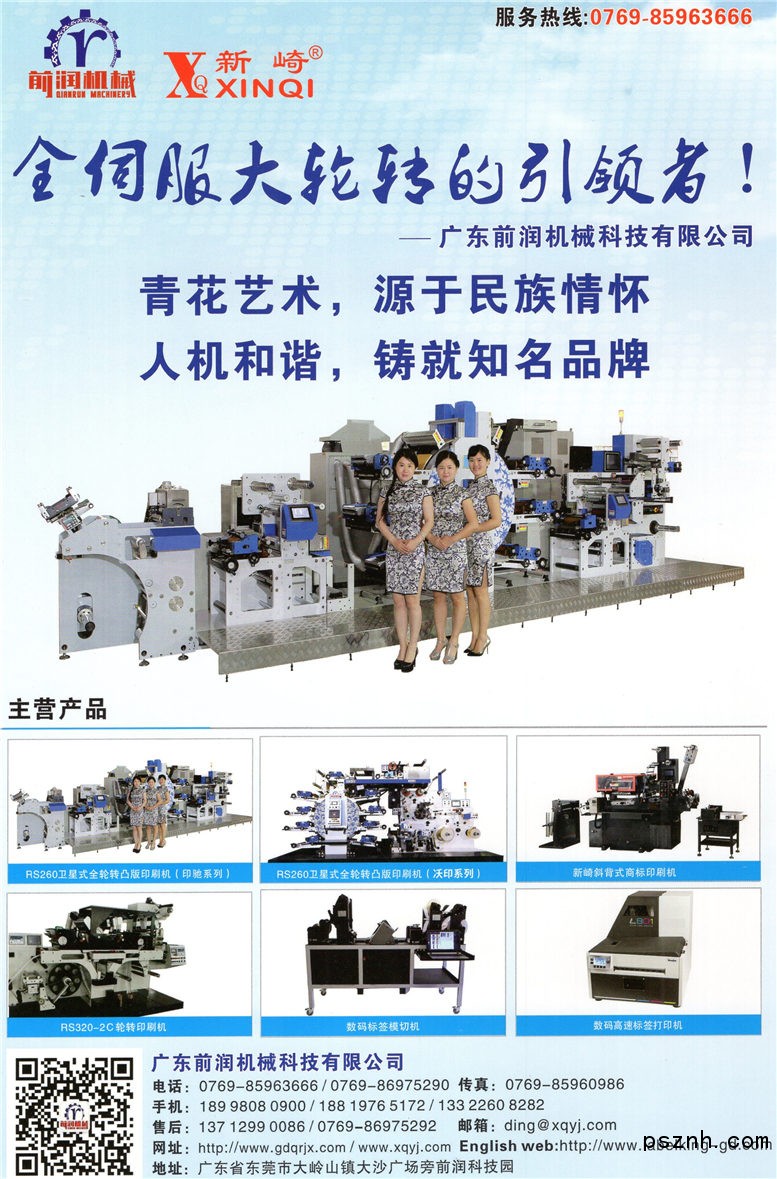 廣東前潤機(jī)械科技有限公司是秉承廈門前潤科技有限公司與東莞市中崎機(jī)械有限公司兩大品牌之優(yōu)勢而成立的一家集研發(fā)、生產(chǎn)、銷售、服務(wù)于一體的新公司,旗下兩大品牌新崎小型印刷機(jī)、前潤輪轉(zhuǎn)印刷機(jī)及高端訂制印刷自動化設(shè)備;廈門前潤科技有限公司專業(yè)為印刷行業(yè)研發(fā)自動化非標(biāo)設(shè)備,公司擁有多項世界專利,“為客戶省人、提效、工藝創(chuàng)新”是公司的核心價值觀;與中國標(biāo)簽企業(yè)共同努力創(chuàng)造印刷工藝的多項奇跡;東莞市中崎機(jī)械有限公司是專業(yè)生產(chǎn)不干膠標(biāo)簽機(jī)十幾年,市場銷售量幾千臺,是國家高新技術(shù)企業(yè),有扎實(shí)的內(nèi)部管理經(jīng)驗(yàn)及專業(yè)的服務(wù)人才;“用前沿科技,為客戶創(chuàng)造利潤,以高品質(zhì)服務(wù)于客戶”是公司堅持不變的理念;藝術(shù)與機(jī)器融于一體的“青花瓷”系列是中國傳統(tǒng)藝術(shù)精華,也是前潤走向世界,代表中國制造的宏偉夢想,以文化、人性、科技、創(chuàng)新的方針,“突破傳統(tǒng),追求卓越”,做到人機(jī)和諧的典范;在“同心,同德,共創(chuàng),共享,感恩”的核心價值觀下;“創(chuàng)前沿,潤無聲”的企業(yè)文化讓我們帶著改變中國印刷設(shè)備使命,與世界印刷設(shè)備共同創(chuàng)造美好的未來;公司重點(diǎn)研發(fā)的Rs260全伺服衛(wèi)星式輪轉(zhuǎn)機(jī),結(jié)合冷燙工藝,完美實(shí)現(xiàn)德國庫爾茲的雙定位貓眼冷燙、UV上光、UV膠覆膜,UV膠冷轉(zhuǎn)印的印刷工藝。自主研發(fā)的浮動輥式無摩擦氣缸閉環(huán)張力控制系統(tǒng),使輸出張力穩(wěn)定可靠。使用直徑1300mm的進(jìn)口包膠滾筒,配置可變數(shù)據(jù)噴碼平臺,充分發(fā)揮衛(wèi)星式的優(yōu)勢。雙刀式圓模切裝置,兩把模切刀共用一個底筒,緊湊的空間設(shè)計及超短的紙路保證了雙刀模切的套準(zhǔn)精度。先進(jìn)的“F-8”隱邊排廢系統(tǒng),進(jìn)一步確保了復(fù)雜模切圖案的順利排廢,大大減少了紙邊寬度,節(jié)約材料。整機(jī)設(shè)計堪稱完美典范。
