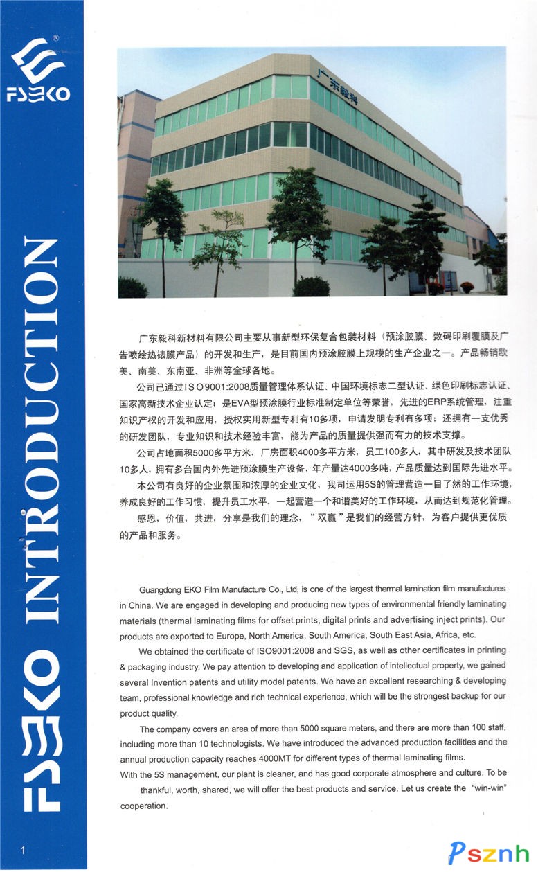 廣東毅科新材料有限公司_BOPP預(yù)涂膜_觸感膜_防刮花膜_數(shù)碼印刷預(yù)涂膜_PET預(yù)涂膜_鐳射預(yù)涂膜_鍍鋁預(yù)涂膜_廣告噴繪熱裱膜_拉伸纏繞膜點(diǎn)擊:620 評(píng)論:0 查看原圖 |