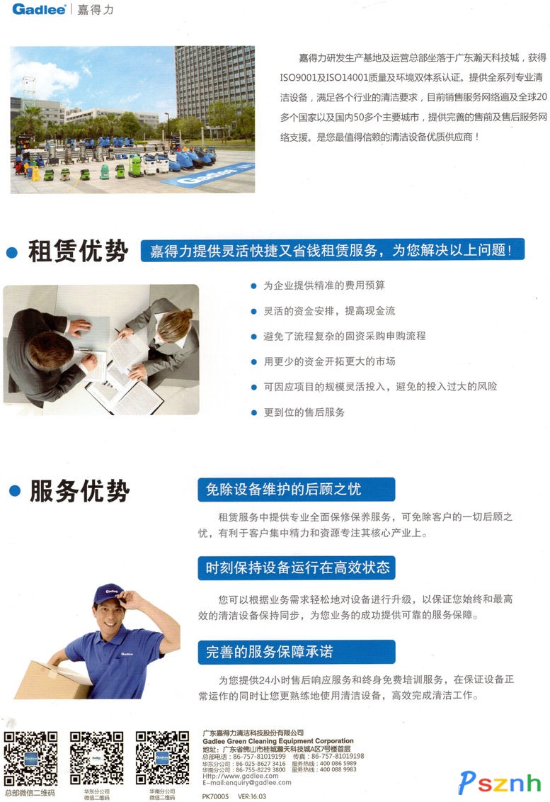 廣東嘉得力清潔科技股份有限公司創(chuàng)始于1993年,經(jīng)過23年的成長與發(fā)展,如今已成為一個集自主研發(fā)、制造、營銷及服務(wù)于一體的清潔設(shè)備行業(yè)的知名品牌,也是行業(yè)首家新三板掛牌上市企業(yè)。嘉得力不斷完善服務(wù)體系,目前已在中國設(shè)立南京、深圳等多間分公司,200多個經(jīng)過認(rèn)證的售后服務(wù)中心分布全球、銷售服務(wù)網(wǎng)絡(luò)遍及全球20多個國家和地區(qū)以及國內(nèi)50多個主要城市。嘉得力主要產(chǎn)品有:多種洗地機、掃地機、單刷機、石材翻新機、拋光機、高壓清洗機、吸塵吸水機、清潔劑和清潔工具等,是工商業(yè)領(lǐng)域清潔設(shè)備行業(yè)最值得信賴的優(yōu)秀供應(yīng)商。