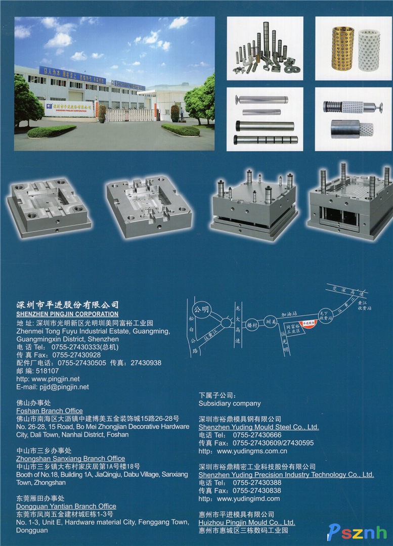 深圳市平進(jìn)股份有限公司工廠占地面積近5萬平方米,公司現(xiàn)有職工千余人。公司擁有400余臺高端制造設(shè)備,包括CNC數(shù)控加工中心、精密銑床、精密注塑機(jī)等先進(jìn)生產(chǎn)設(shè)備,核心業(yè)務(wù)是研發(fā)、生產(chǎn)、銷售各種精密模具、塑膠模架、冷沖模座、高精度模具配件,并提供精料加工、調(diào)質(zhì)熱處理等服務(wù)和IMD/IML精密塑膠產(chǎn)品。13年來堅(jiān)持提供優(yōu)質(zhì)的產(chǎn)品和服務(wù),獲得了市場及客戶的廣泛認(rèn)同,成功鑄造了“平進(jìn)”優(yōu)質(zhì)品牌形象。公司立足珠三角,業(yè)已發(fā)展成為國內(nèi)模架領(lǐng)域的龍頭企業(yè)之一。
