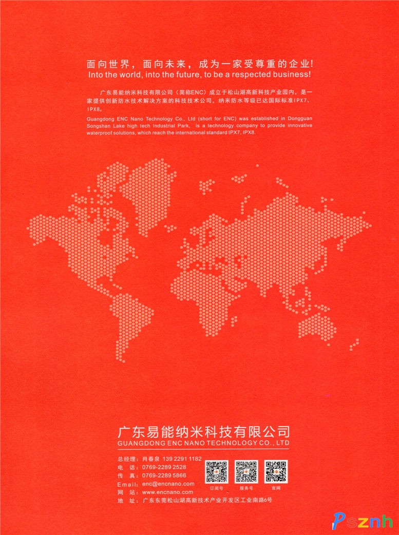 公司主營業(yè)務(wù)涉及真空鍍膜設(shè)備、納米防水原料及創(chuàng)新防水技術(shù)的研發(fā)與應(yīng)用,ENC自主研發(fā)制造的真空鍍膜設(shè)備具有優(yōu)異的性能。ENC納米原料(歐盟RoHS標準、通過中國軍標準GJB150-2009、美軍標MIL-46058C標準、美國NSF認證、ISO-10993生物試驗要求)在真空鍍膜設(shè)備經(jīng)過一系列物化反應(yīng)后能在任何物體表面“生長”了一層厚度均勻、致密無針孔、透明無應(yīng)力的納米涂層, 它具有優(yōu)異的電學性能、機械性能和化學性能。同時,不會引起產(chǎn)品自身功能,外觀以及微分子結(jié)構(gòu)等特性的變化