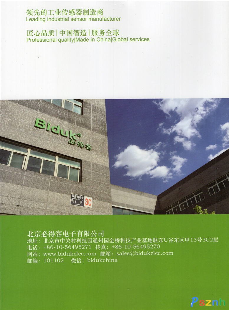 北京必得客電子有限公司 Biduk做為歐美一些知名品牌OEM生產(chǎn)制造商,多年來始終致力于生產(chǎn)、研發(fā)工業(yè)自動(dòng)化領(lǐng)域電感式傳感器、電容式傳感器、光電式傳感器等工控產(chǎn)品。產(chǎn)品研發(fā)與生產(chǎn)嚴(yán)格按照IEC國(guó)際標(biāo)準(zhǔn)來設(shè)計(jì)與控制,至今已匯聚具有豐富傳感器經(jīng)驗(yàn)高科技人才,先進(jìn)的生產(chǎn)工藝和完善的檢測(cè)設(shè)備,嚴(yán)格按照ISO9001質(zhì)量管理體系要求進(jìn)行管理,產(chǎn)品已通過嚴(yán)格的EMC(電磁兼容性)、IP防護(hù)等級(jí)、振動(dòng)沖擊、高低溫等國(guó)際標(biāo)準(zhǔn)測(cè)試并通過歐盟CE認(rèn)證和ROHS檢測(cè)。  公司擁有十幾個(gè)系列數(shù)千種不同種類規(guī)格功能產(chǎn)品。如今在專業(yè)領(lǐng)域內(nèi),公司產(chǎn)品和服務(wù)的廣度和深度深得客戶親賴,業(yè)務(wù)范圍也隨之?dāng)U及全球。我們的足跡遍布世界航空航天、鐵路、港口、冶金、礦山、機(jī)床、紡織、電梯、石油化工、印刷、包裝、食品、建筑、汽車、等行業(yè)。為客戶提供國(guó)際標(biāo)準(zhǔn)的多種類接近傳感器和多方位快捷的技術(shù)服務(wù)支持。
