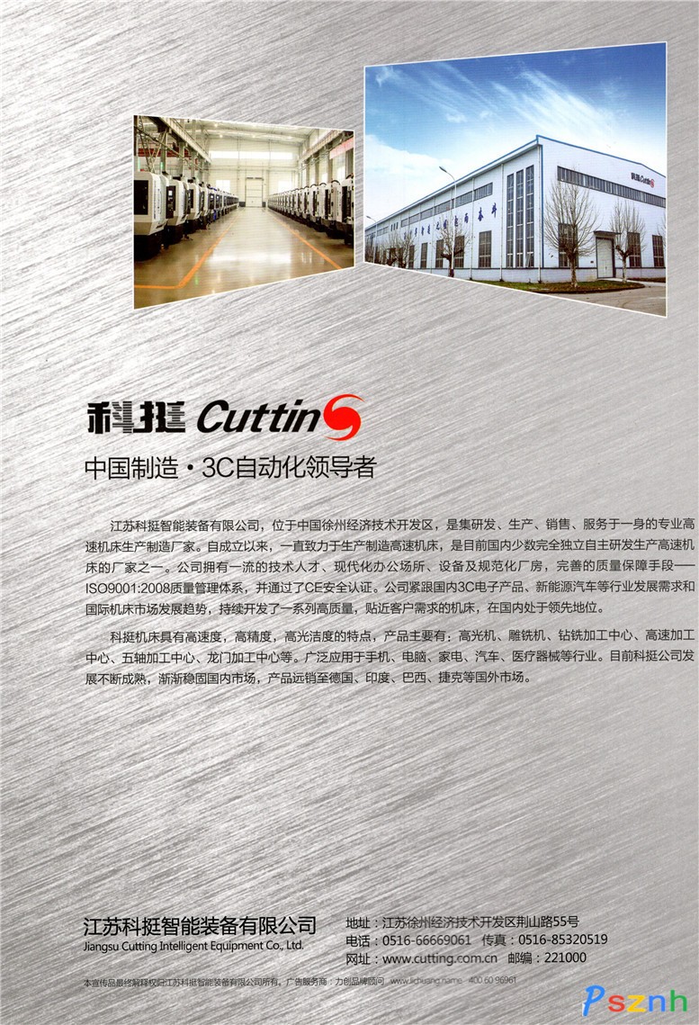 江蘇科挺智能裝備有限公司,位于中國徐州經(jīng)濟技術(shù)開發(fā)區(qū),是集研發(fā)、生產(chǎn)、銷售與服務(wù)于一身的專業(yè)高速機床生產(chǎn)制造廠家。自成立以來,一直致力于生產(chǎn)制造高速機床,是目前國內(nèi)少數(shù)完全獨立自主研發(fā)生產(chǎn)高速機床的廠家之一。   公司擁有一流的技術(shù)人才、現(xiàn)代化辦公場所、設(shè)備及規(guī)范化廠房,完善的質(zhì)量保障手段 ——ISO9001:2000質(zhì)量管理體系,并通過了CE質(zhì)量認(rèn)證。公司緊跟國內(nèi)3C電子產(chǎn)品、新能源汽車等行業(yè)發(fā)展需求和國際機床市場發(fā)展趨勢,持續(xù)開發(fā)了一系列高質(zhì)量,貼近客戶需求的機床,在國內(nèi)處于領(lǐng)先地位。   科挺機床具有高速度,高精度,高光潔度的特點,目前產(chǎn)品主要有:高光機、雕銑機、鉆銑加工中心、高速加工中心、五軸加工中心、龍門加工中心等。廣泛應(yīng)用于手機、電腦、家電、汽車、醫(yī)療器械等行業(yè)。目前科挺公司發(fā)展不斷成熟,漸漸穩(wěn)固國內(nèi)市場,產(chǎn)品遠銷至德國、印度、巴西、捷克等國外市場。   我們的合作伙伴主要有:臺灣新代、臺灣上銀、臺灣圣杰、西班牙發(fā)格、臺灣勝祥、德國力士樂、德國施耐德、日本美德龍、日本YASKAWA、日本歐姆龍等。   我們的主要客戶有:比亞迪汽車工業(yè)有限公司、廣東高樂玩具股份有限公司、創(chuàng)維集團、美的集團等