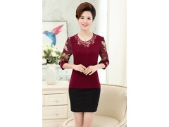 蘇州市價格優(yōu)惠的媽媽裝批發(fā)-新型媽媽裝七分袖蕾絲鏤空T恤衫