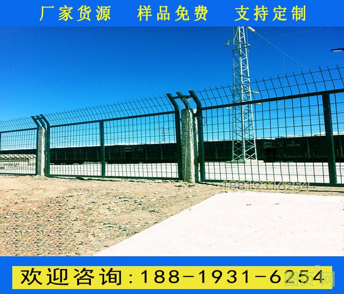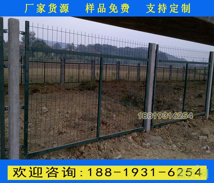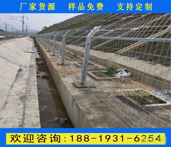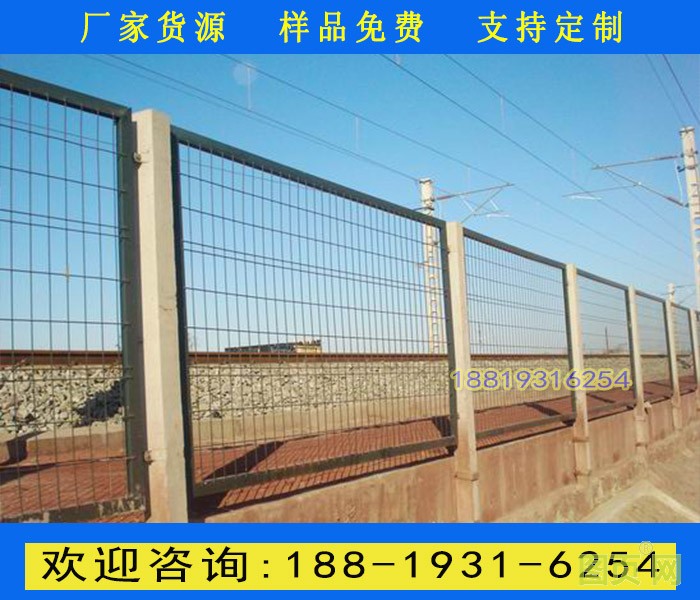 鐵路防護(hù)柵欄主要分鍍鋅防護(hù)柵欄、浸塑防護(hù)柵欄倆大種類,是以立柱加網(wǎng)片連接而成。選用優(yōu)質(zhì)低碳鋼絲焊接。不僅外觀大方,美觀,而且牢固,防腐性好。主要適用于鐵路兩旁及邊界的隔離防護(hù)及美化。