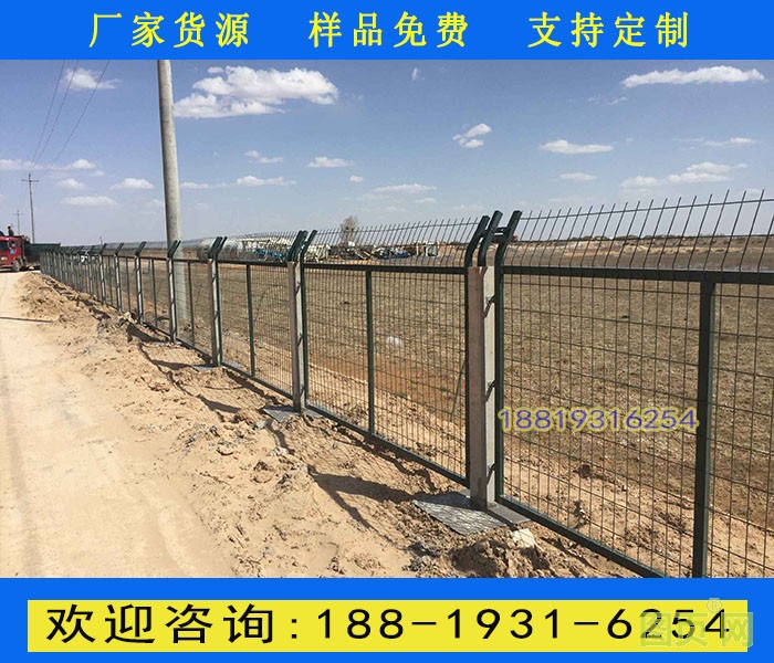 鐵路封閉、高速公路隔離柵、開發(fā)區(qū)圍界、場(chǎng)區(qū)圍網(wǎng),采用立柱采用混凝土澆筑件,工程造價(jià)低,強(qiáng)度高 整體穩(wěn)定 好,彩色塑層具有良好的抗腐蝕和裝飾效果,網(wǎng)圍界整體和諧 美觀。