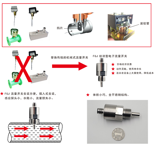 2、替代擋板式流量開關(guān),動作靈敏,使用壽命長