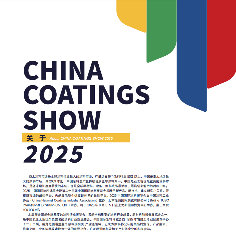 2025年9月3—5日,2025中國國際涂料博覽會(huì)暨第二十三屆中國國際涂料展覽會(huì)(CHINA COATINGS SHOW 2025)將在上海新國際博覽中心N1(原材料)、N2(涂料)、N3(設(shè)備)館隆重召開。
