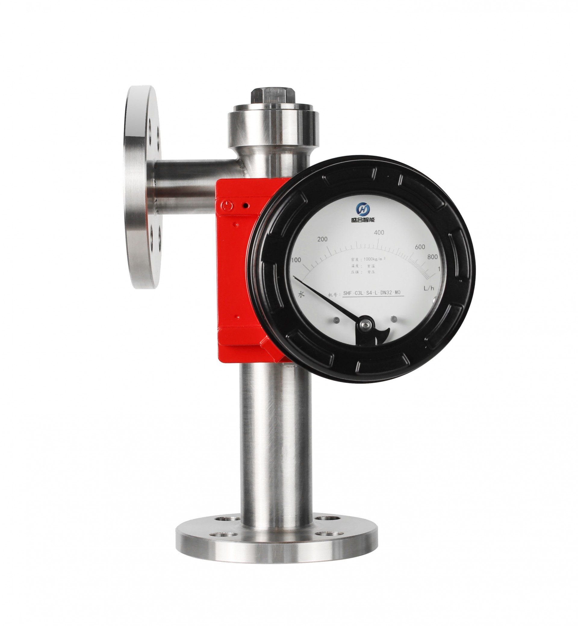 就地型液體氣體通用指針式金屬管浮子流量計(jì),浮子垂直安裝在錐形測量管內(nèi),由于流 體的作用,它可以在錐形管中上下自由移動(dòng),浮子的外緣直徑與錐形管形成的環(huán)形面積隨著浮子位置 的變化而變化,當(dāng)流體的流量穩(wěn)定在某一數(shù)值時(shí),浮 子也在某一個(gè)位置處于一種動(dòng)平衡狀態(tài),它與錐形管 之間的環(huán)形面積也保持恒定,此時(shí),浮子受到三個(gè)力 的作用:浮子向下的重量,向上的浮力和流體的動(dòng) 力,這三個(gè)力達(dá)到平衡。根據(jù)流體動(dòng)力學(xué)的柏努力方 程,力平衡方程和流體的連續(xù)性定理,可以計(jì)算出流 體通過環(huán)形面積的平均瞬時(shí)流量。
